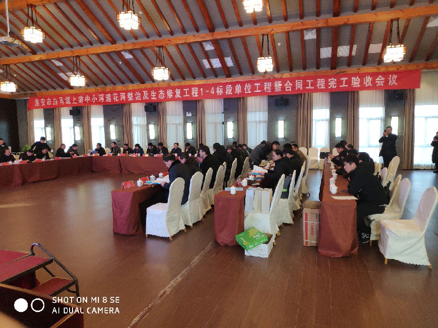 2019年1月16日,淮安市白馬湖投資發(fā)展有限公司在白馬湖漁耕驛站酒店主持召開淮安市白馬湖上游中小河道花河整治及生態(tài)修復(fù)工程1-4標(biāo)段單位工程暨合同工程完工驗(yàn)收會(huì)議。由工程建設(shè)、設(shè)計(jì)、施工、監(jiān)理、跟蹤審計(jì)、第三方檢測(cè)等單位代表組成單位工程暨合同工程完工驗(yàn)收工作組,邀請(qǐng)洪澤區(qū)人民政府、蘇淮高新區(qū)管委會(huì),市水利局、環(huán)保局、財(cái)政局、審計(jì)局、園林局、國土資源局、白馬湖辦,洪澤區(qū)發(fā)改委、水利局,蘇淮高新區(qū)住房和城鄉(xiāng)建設(shè)局,洪澤區(qū)高良澗鎮(zhèn)街道辦事處、黃集街道辦事處,蘇淮高新區(qū)淮洪路辦事處、張碼辦事處,淮安市水利工程質(zhì)量安全監(jiān)督站等單位代表列席會(huì)議。我公司承建的施工2標(biāo)段順利通過完工驗(yàn)收,其中張玉河節(jié)制閘子單位工程被評(píng)為優(yōu)良等級(jí)。