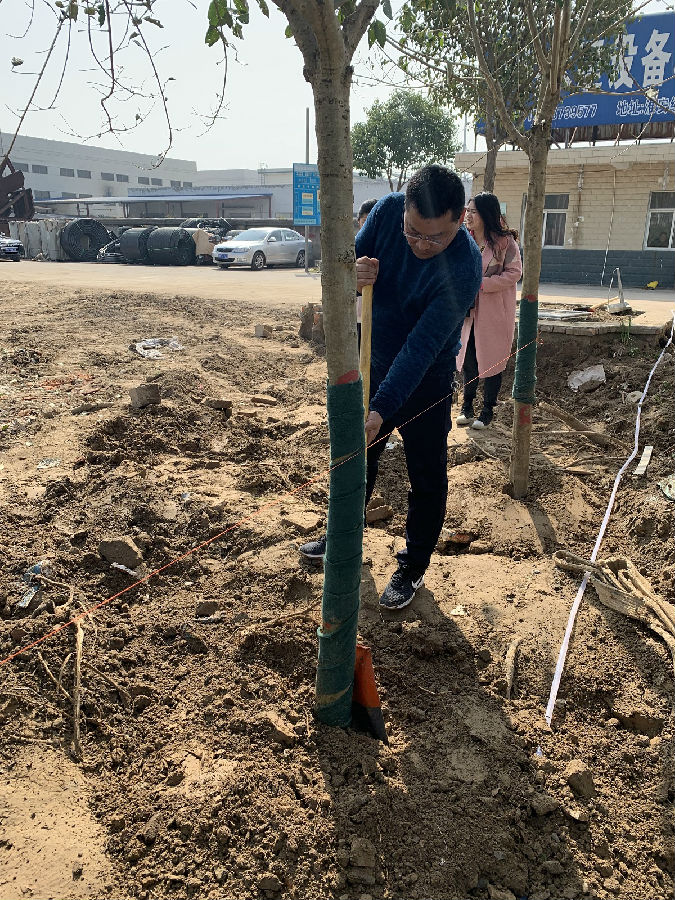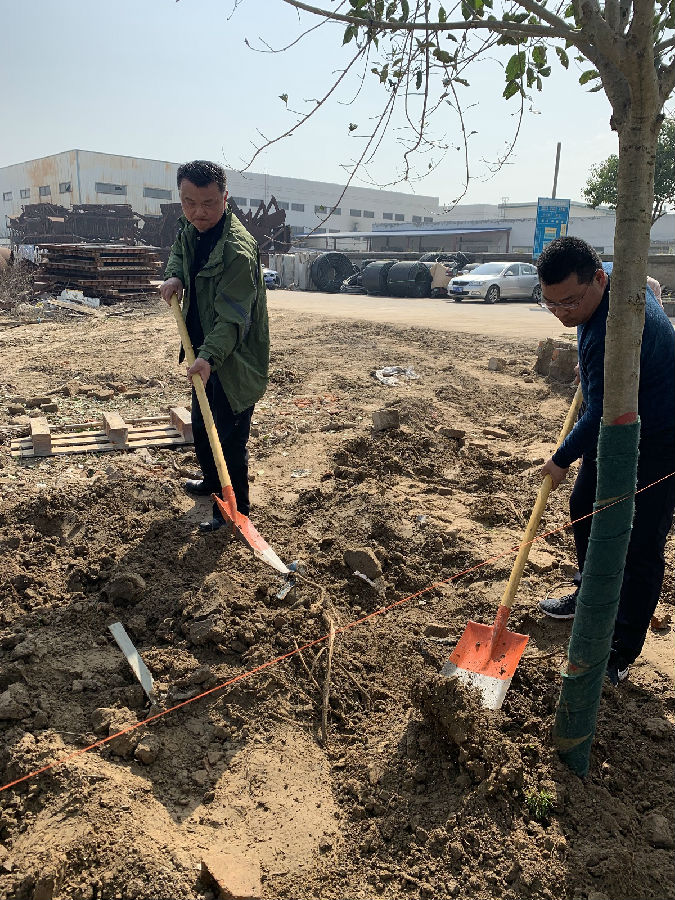 植樹活動(dòng)開始前,徐書記作了動(dòng)員講話,參加植樹活動(dòng)的30多名黨員和志愿者,紛紛熱情高漲、干勁十足,大家丈量拉線、按點(diǎn)挖坑、揮鍬培土,配合協(xié)調(diào),各道工序一絲不茍,忙碌的身影隨處可見,植樹現(xiàn)場(chǎng)一派熱火朝天的勞動(dòng)場(chǎng)景。經(jīng)過大家的辛勤勞動(dòng),30多株大葉女貞樹苗種植在凱通檢測(cè)院內(nèi),形成一道亮麗的生態(tài)、綠色風(fēng)景線,更顯勃勃生機(jī)。